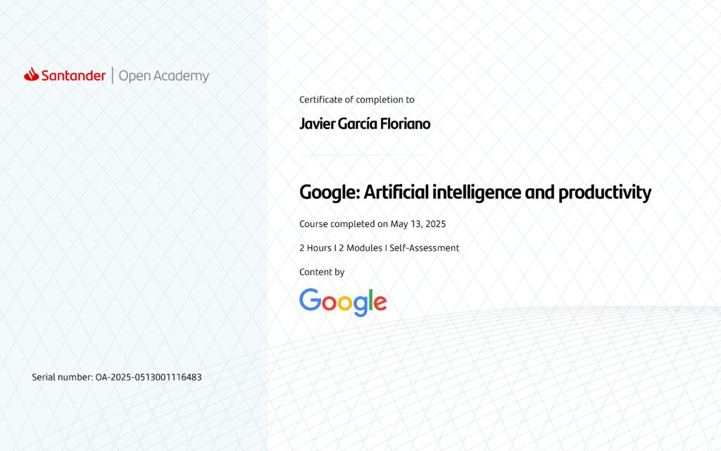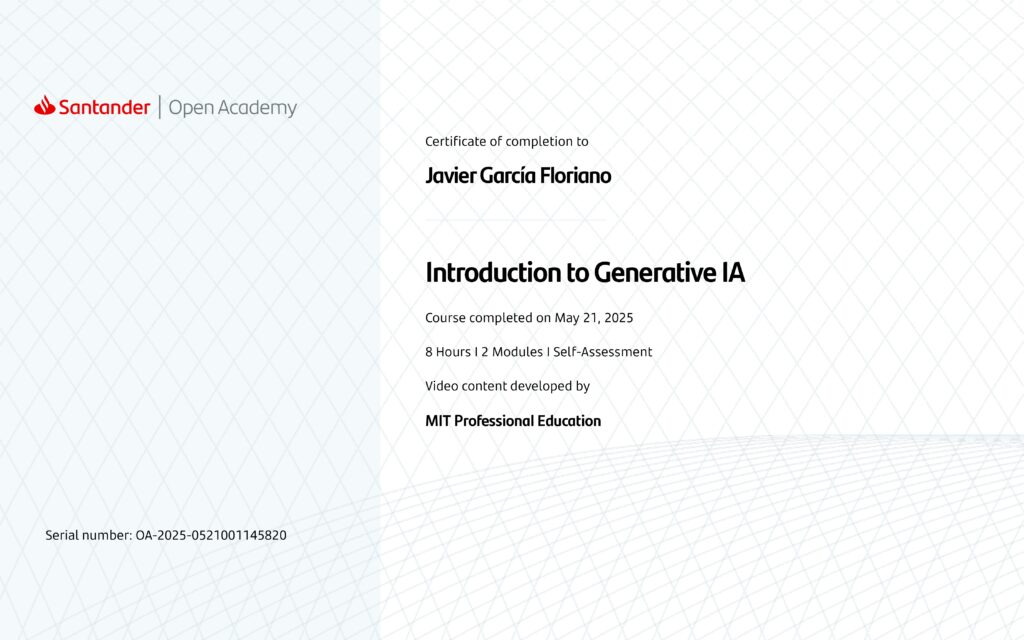 Keeping with my already strong foundation in AI, I took some shorter, yet powerful modules from Santander Open Academy, to expand my understanding of AI.