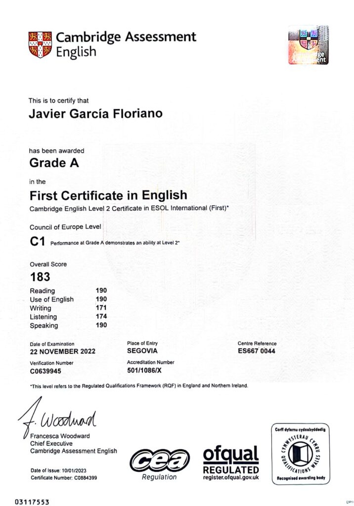 As I had been studying English since a young age, I’ve always excelled on the English exams I’ve taken, starting at the age of 7, with the Trinity College exams, up to the latest one which was in 2022, with the First Certificate in English obtaining a grade C1 through the Cambridge exam.
